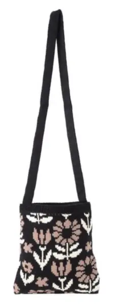 花柄のがま口ショルダーバッグ、布製で軽量。