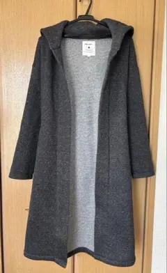 ニット素材のグレー系ロングコート、サイズ3。