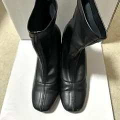 スクエアトゥ ショートブーツ 太ヒール 黒 ブラック 24cm