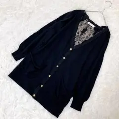 【MKミッシェルクラン】Vネック ロングカーディガン ブラック/ポケット付き38