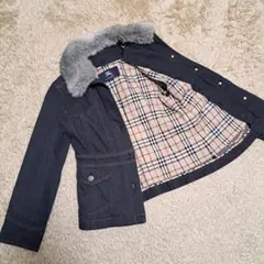 BURBERRY LONDON ダークデニムダブルブレストジャケットファー襟付き