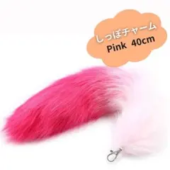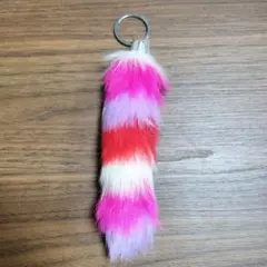 グラデーションピンクのファー素材で作られたしっぽの形状のキーホルダー。1つ