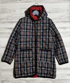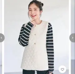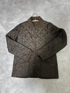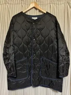 ベージュのキルティングジャケット、フロントジッパー付きでサテン裏地。