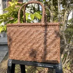 Lサイズ 山葡萄 蔓 かごバック かご 籠 巾着 網代編み 職人の手作り かご