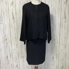 ダークネイビースカートスーツ、テーラードジャケットとフレアスカートのセット。