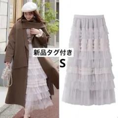 流れるような美しい斜めのラッフルに、プリーツは裾にかけて消し加工を施すことでふわっとひろがるエレガントなシルエットになっています。