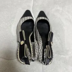RANDA ダブルストラップポインテッドトゥミュールパンプス