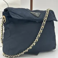 KWZ03-35 プラダ 三角ロゴ ダブルチェーンショルダーバッグ キルティング