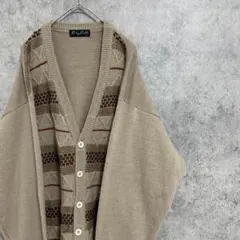 90s vintage 総柄 カーディガン メンズ 刺繍 古着 アクリル M1