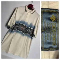 グレー系ストライプのポロシャツ、CATTIE CREEK COUNTRY CLUB刺繍付き。