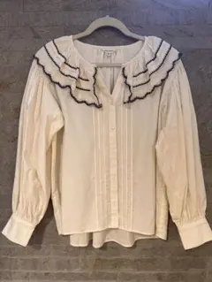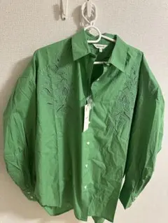 フリンジデザインのグリーンシャツ、MOUSSY製。
