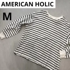 10927 アメリカンホリック ボーダーTシャツ カットソー ネイビーL 丈長め