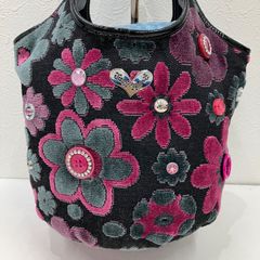 ハンドバッグ お出かけ ビジュー スパンコール ローズ カーラ 2室構造 クリスタルガラス ゴブラン織 型押し レディース 自立型 逆台形 肩掛け 財布 携帯