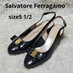 サルヴァトーレフェラガモ パンプス ヴァラ リボン ブラック フォーマル
