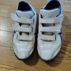 ホワイトとブラックの配色で、ベルクロストラップ付きのトレーニングシューズ。