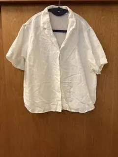 【ユニクロ】リネン使用 半袖ブラウス リボン グレー Lサイズ レディース