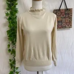 ブラウンとホワイトの幾何学模様が特徴的な長袖ニットセーター。
