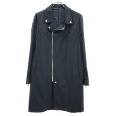 ウールとレザーのコンビネーションで、ライダースジャケットスタイルのロングコート。