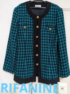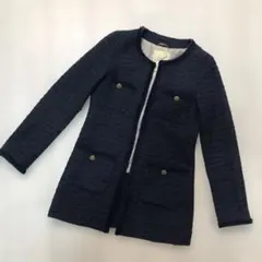 ヴィンテージ 昭和レトロ ノーカラーツイードジャケット ロング丈 金ボタン