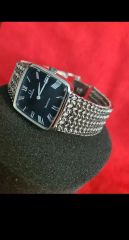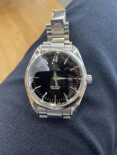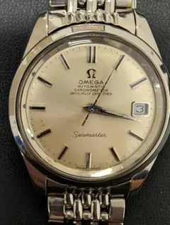 OMEGA Seamasterの自動巻き時計、シルバー文字盤とステンレススチール製メッシュバンド。