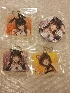 キャラクターイラストの缶バッジとアクリルキーホルダーのセットです。