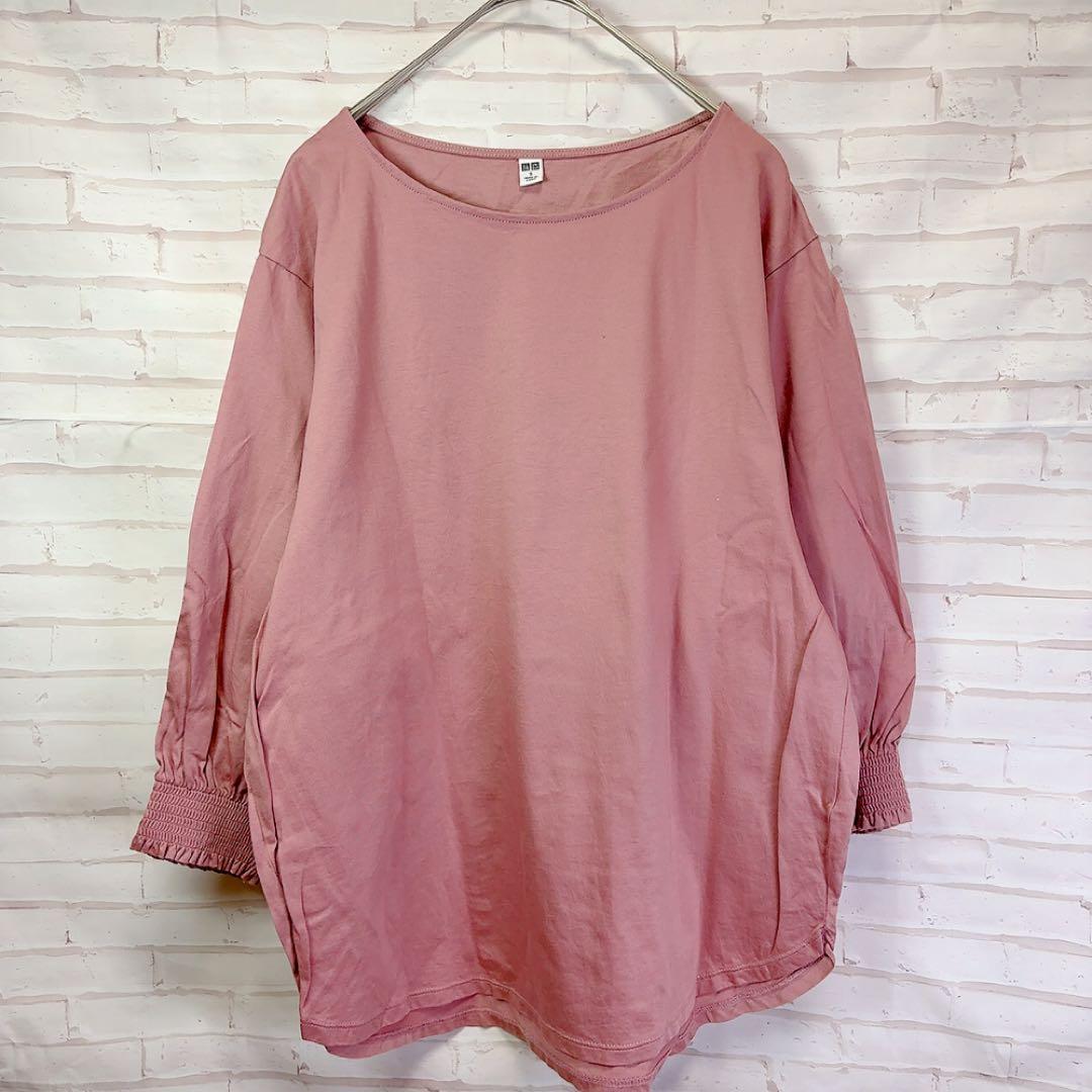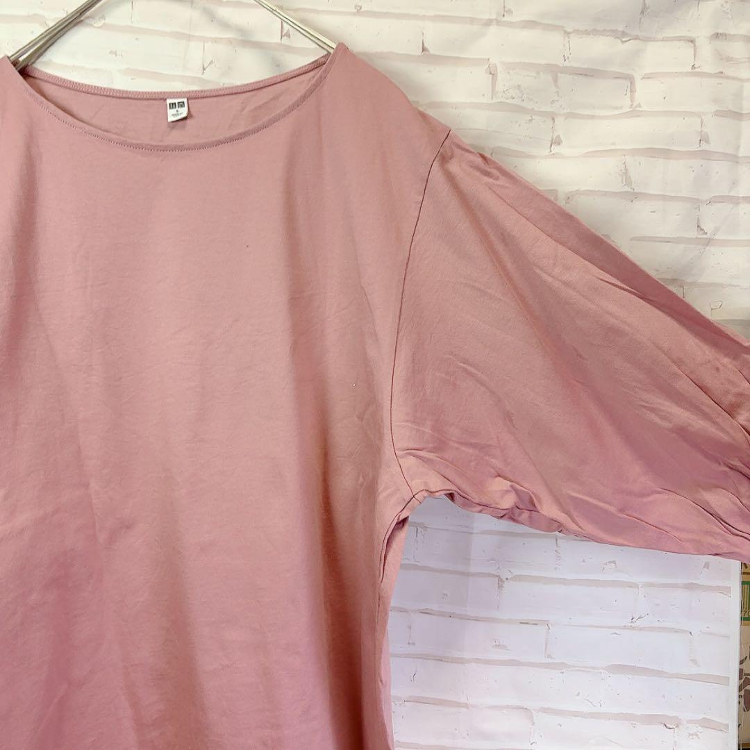 ユニクロ マーセライズコットンシャーリングボリュームスリーブTシャツ ピンク S