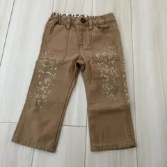 ダークブルーのデニムパンツ、刺繍ポケット付き、サイズ80。