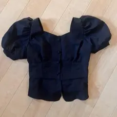 ドット柄の赤い半袖ブラウス、レースの襟付き、バルーン袖デザイン。