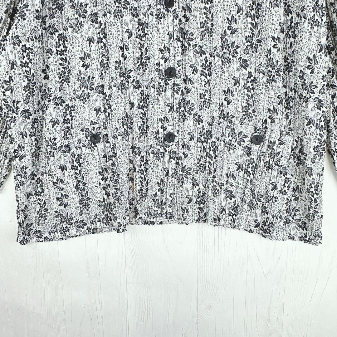 2173【k.k.k.k.】ブラウス シャツ 長袖 総柄 モノトーン 日本製 L