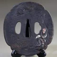 鍔 鐔 武具 骨董 刀装具 江戸時代【美濃 銅魚々子地 萩図鍔】(鍔箱付き)