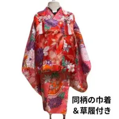 【必要なものはすべて揃ったフルセット】被布コート・着物・襦袢・伊達衿(縫い付け済)・半衿(縫い付け済)・雪駄・白足袋・腰紐の8点セット。ご家庭でも簡単に着付けができるよう、説明書もお付けいたします。
