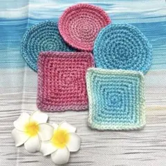 ハンドメイド コットン コースター 薔薇 かぎ針編み