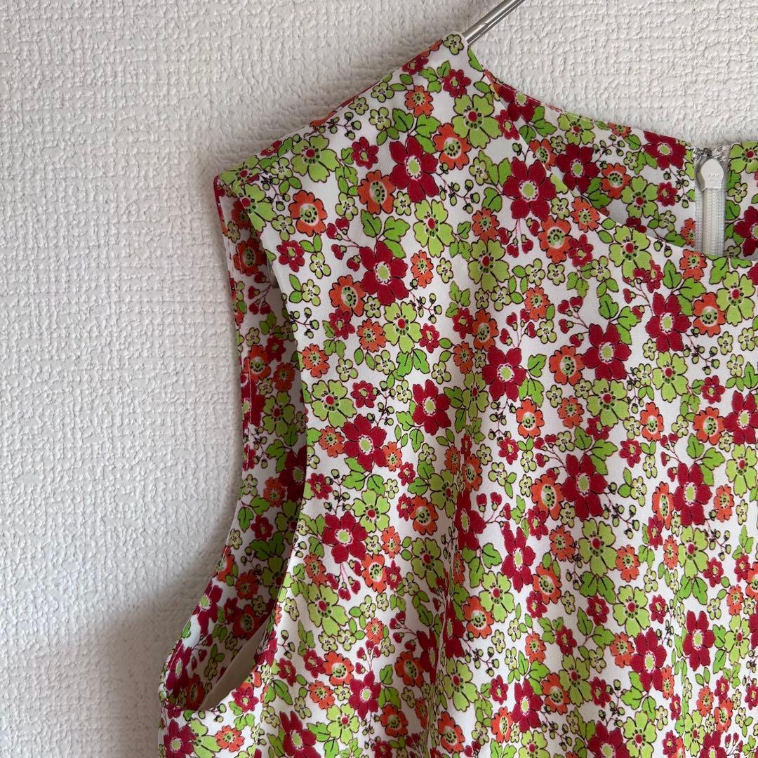 フラワープリントのAラインノースリーブワンピース、サイズ8。