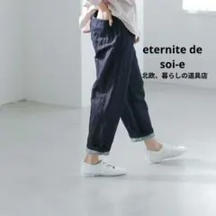 北欧暮らしの道具店 や SHIPS 等のセレクトショップで取り扱いのある eternite de Soi-e (エテルニテドゥソワ) のリネン100%のデニムパンツ。