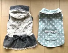 柔らかいフリースとボア素材の犬用服、黒と白の水玉模様。