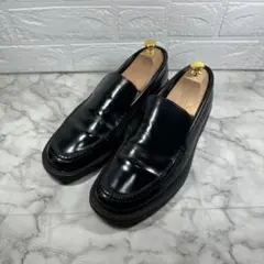 シンプルで洗練されたデザインのブラックローファー、ビジネスシーンにも最適。