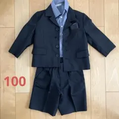 青いシャツと黒のフォーマルスーツ、ネクタイとサスペンダー付き、サイズ100cm。男の子用