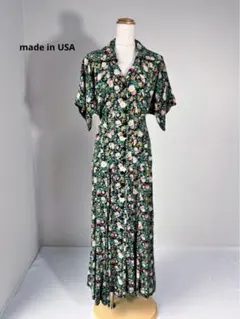 ヴィンテージ USA製 花柄 前開き レーヨン ロングシャツワンピース J47