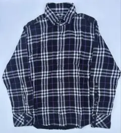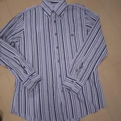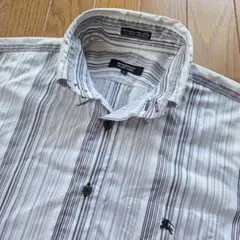 バーバリー ブラックレーベル ボタンダウンシャツ ストライプ 刺繍ロゴ L 美品