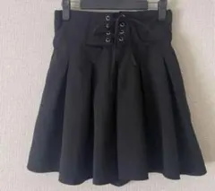ロゴ入りウエストバンドのグレーのフレアスカート、インパン付き。