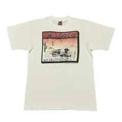 インタビューのグラフィックが特徴のホワイトTシャツ、XLサイズ、100%コットン製。