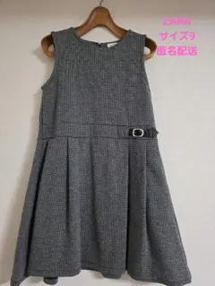 ZARA KIDS:シースルーのドット柄袖とプリーツスカートが特徴のブラックワンピースです。