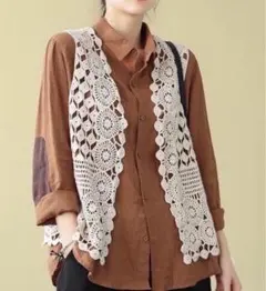 【大人気】 ベスト ジレ 羽織り レース かぎ針編み ナチュラル ベージュ