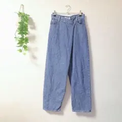 ダメージ加工が施されたダークブルーのLOWRYS FARMデニムパンツ。