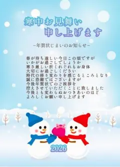 ※“寒中お見舞い申し上げます”の文字が不要の場合はメッセージお願い致します。イラストのみも対応致します。