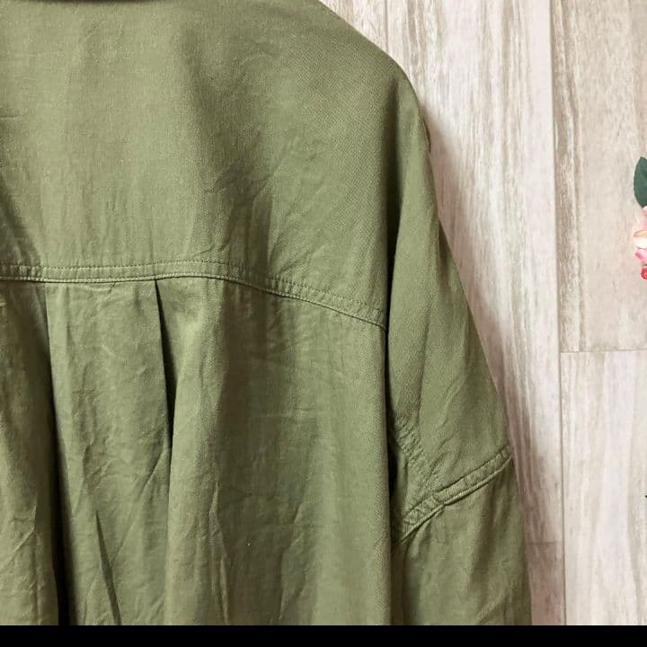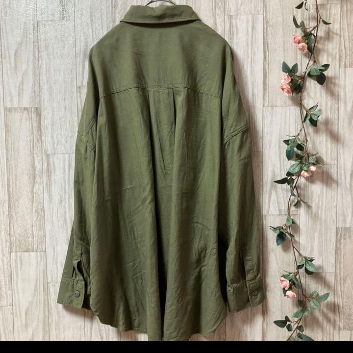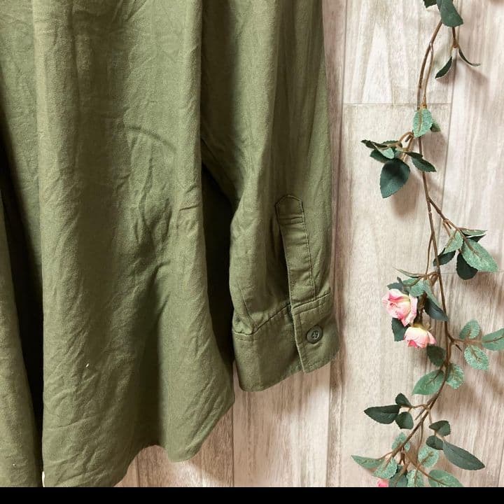 このLOWRYS FARMの長袖シャツは、カーキのシンプルでありながらスタイリッシュなデザインが特徴です。
