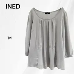 イネド レディース 半袖 ボートネック ブラウス ケミカルレース袖【M】ホワイト
