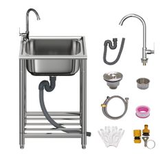 流し台 シンク A150 ガーデンシンク ステンレス 水栓付き 蛇口 左右対応 屋外 簡易式 作業台 錆びに強い 簡単取付 工場 農園 約横150x奥行45x高さ80cm