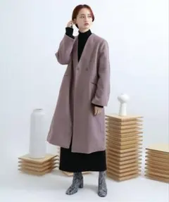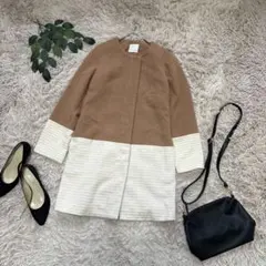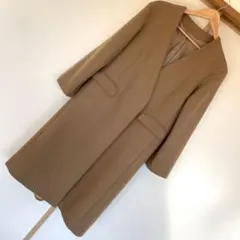 SENCE OF PLACE ウール混 ノーカラー ロングコート 36 ベージュ