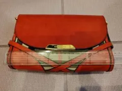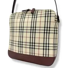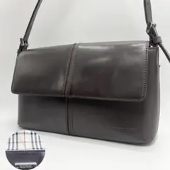 レザー製のブラウンショルダーバッグ、調整可能なストラップ付き。